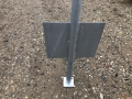 Lav galge til skilt 33x175 cm. Varmgalvaniseret stålrør Ø48 med flabs og bundplade. nedgravningsdybde 80 cm. Frihøjde fra jord til underligger 50 cm. De viste billeder er generelle billeder der viser flabs, bundplade m.v.