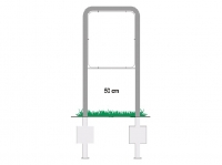Varmgalvaniseret rørstander (lige stander) med flaps og bundplade. Stålrør Ø60 mm. Totalhøjde 420 cm. Nedgravningsdybde 100 cm. De viste billeder er generelle billeder der viser flabs, bundplade m.v.